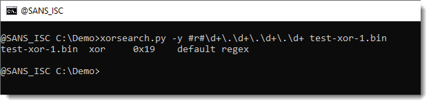 To instruct my tool xorsearch.py to generate a YARA rule for this regular expression, one uses the prefix #r#, like this (r stands for regex):